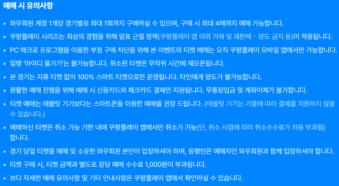 꼭 성공적인 예매 하셔서 즐거운 경기관람 하시길 바랍니다.